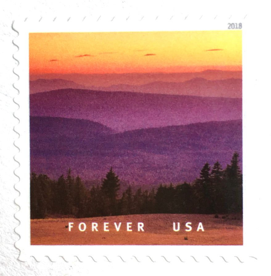 Includes a total of 10 (TEN) Burgundy Mountain forever stamps.