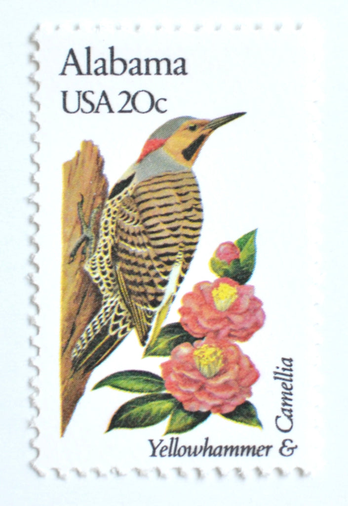 10 Alabama Vintage Postage Camellia State Flower and Bird Unused Stamps
