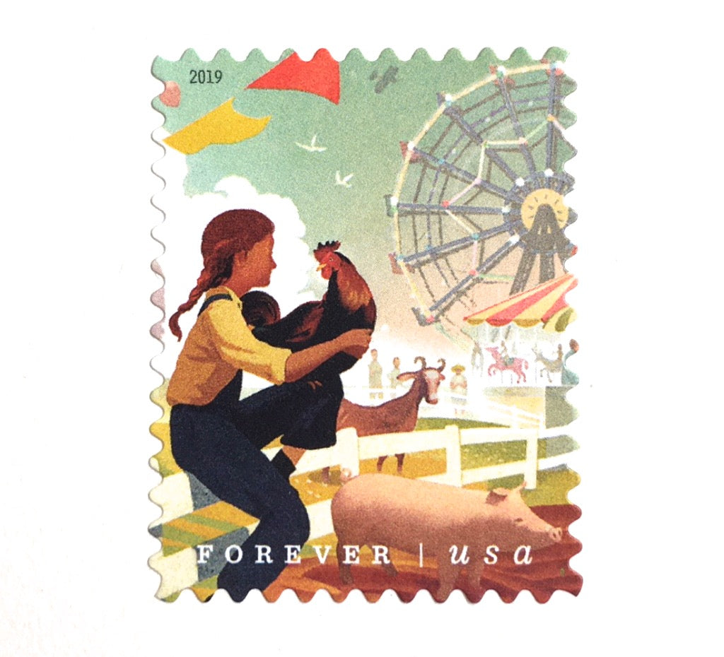 10 Fair Farm Girl 4-H Forever Stamps Farm Animals and Ferris Wheel Amusement Park Barnyard Carnival Stamps for Mailing