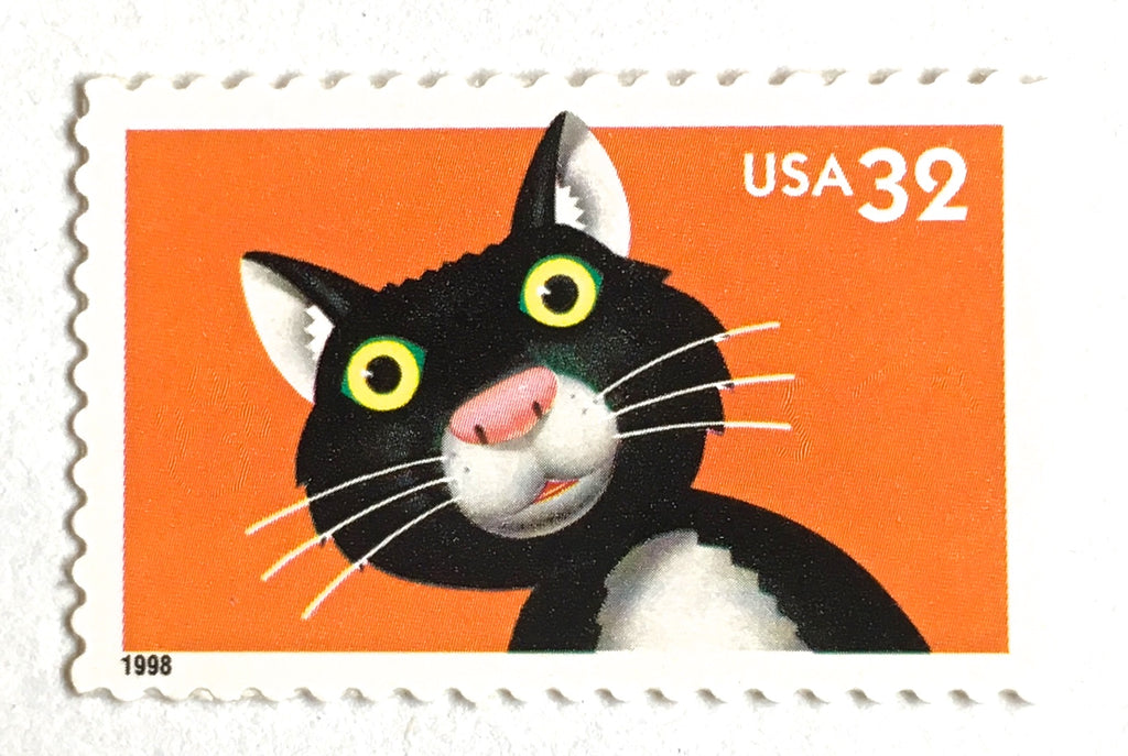 10 Black Cat Stamps Unused Vintage Halloween Black Cat Postage Stamps for Mailing
