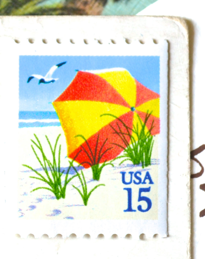 10 Beach Umbrella Stamps Unused Vintage Postage Stamps Beach Vacation Stamps for Mailing