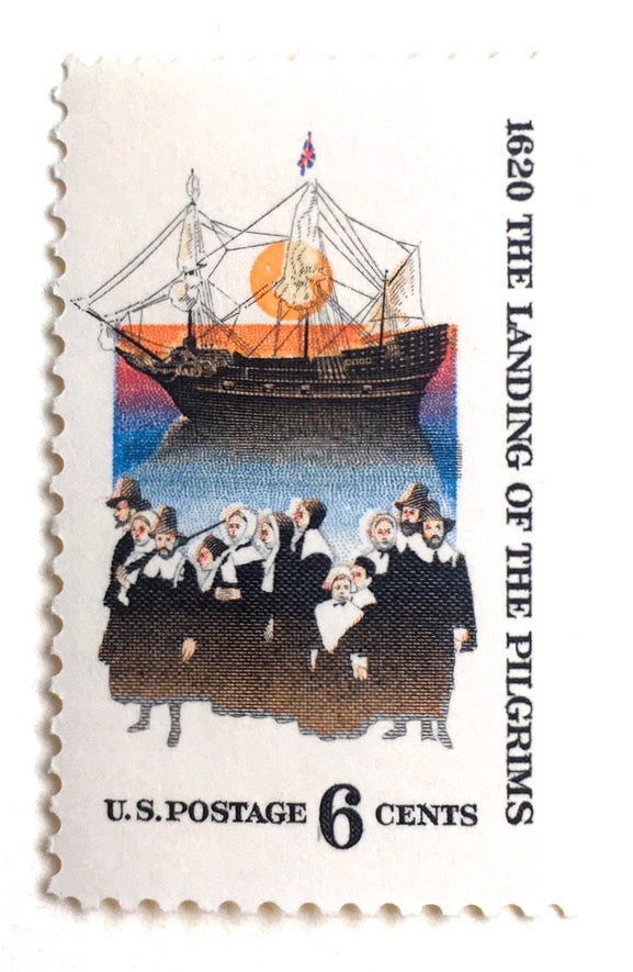 10 Pilgrim Postage Stamps Vintage Thanksgiving Postage for Mailing