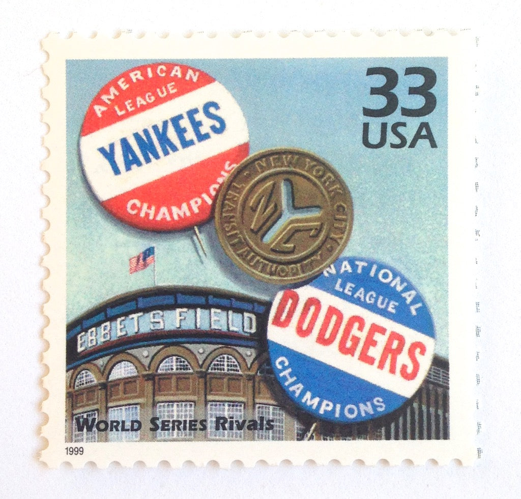 10 Vintage Baseball Stamps Unused Yankees v Dodgers World Series Brooklyn New York City Ballpark Stadium Postage for Mailing