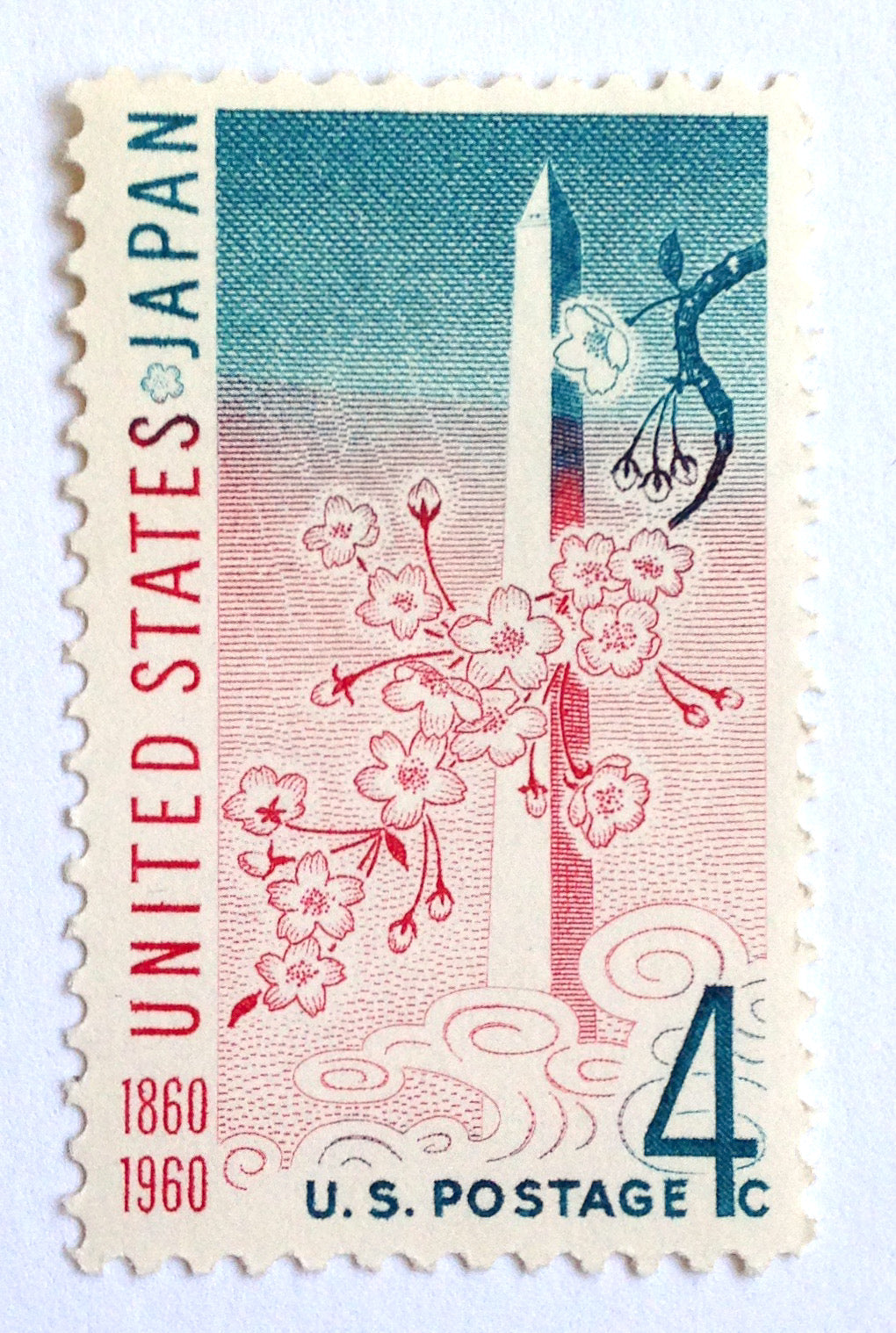 10 Vintage Cherry Blossom Stamps Unused Washington Monument Washington D.C. National Mall 1960 Pink Postage Stamps for Mailing