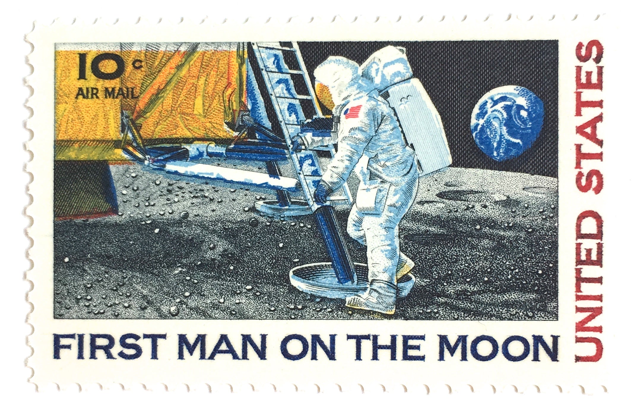 10 First Man on the Moon Stamps // Vintage 1960s Lunar Astronaut Postage // 10 Cent Vintage Space Postage Stamps for Mailing