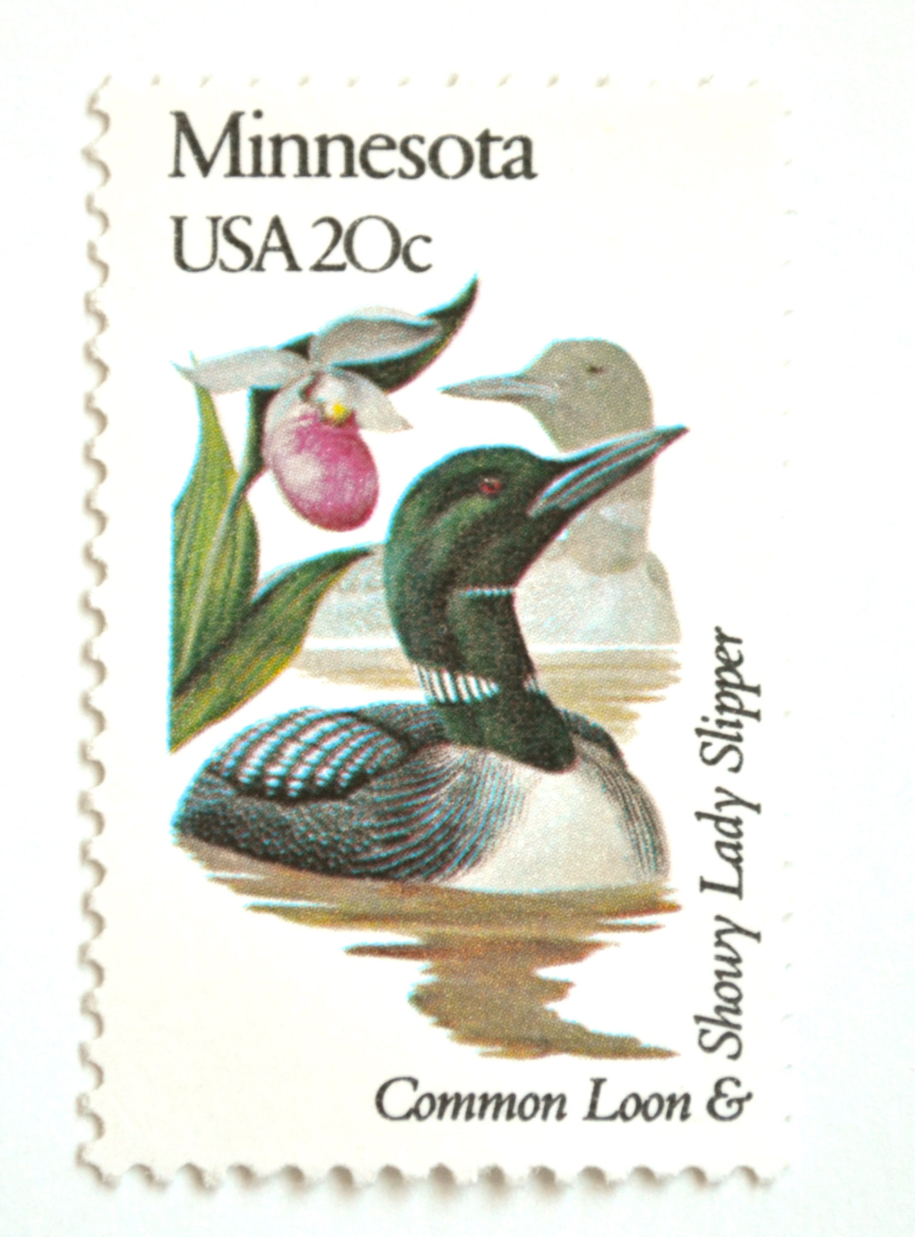 10 Minnesota Loon Stamps Vintage Lady Slipper State Bird and Flower Stamps for Mailing