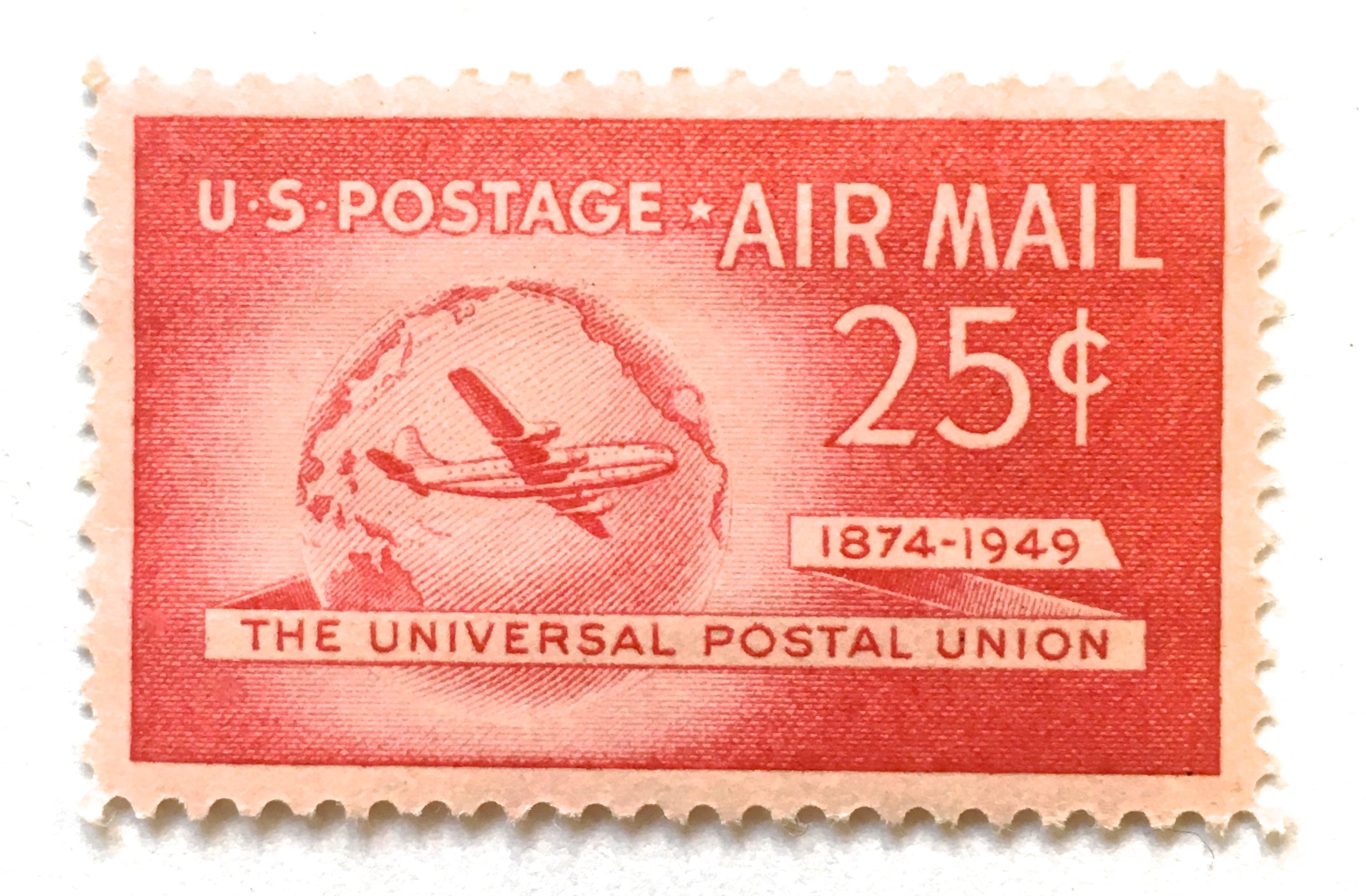 10 Vintage Air Mail Postage Stamps Unused 25 Cent 1949 Red Air Mail Stamps Vintage Stamps for Crafting and Mailing