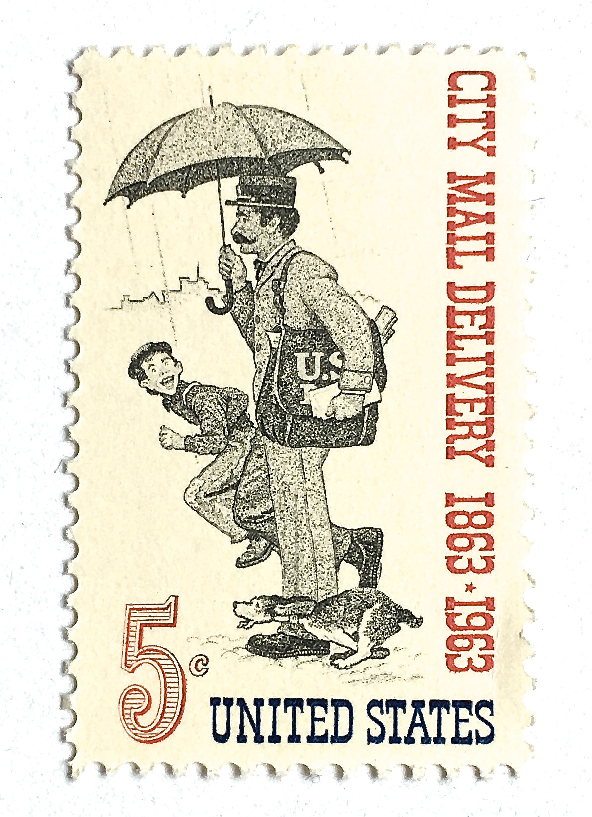 Includes a total of 10 (TEN) 5¢ Mailman "City Mail Delivery" stamps.