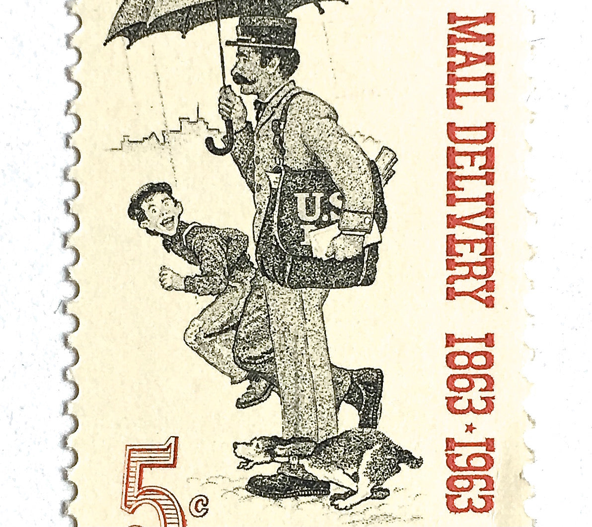 10 Vintage Mailman Letter Writing Stamps Unused City Mail Delivery Vintage 5 Cent Postman Postage Stamps for Mailing