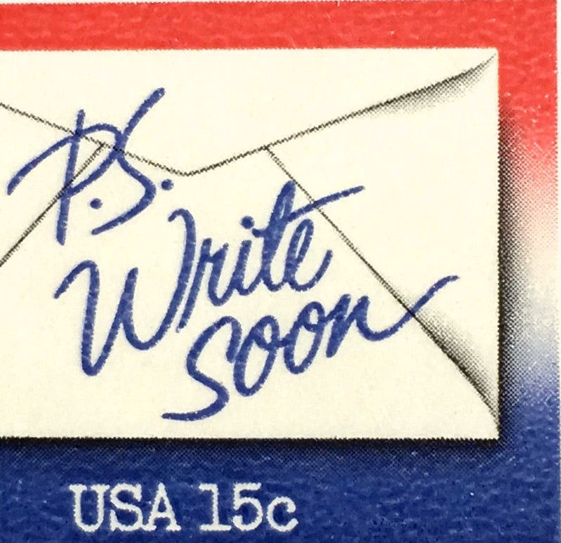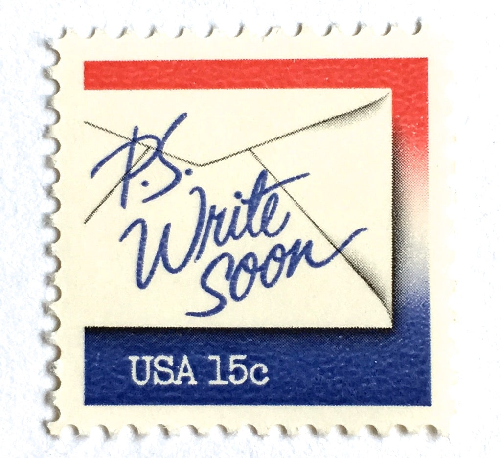 10 Vintage Postage Letter Writing Stamps Unused P.S. Write Soon Vintage 15 Cent Postage Stamps for Mailing