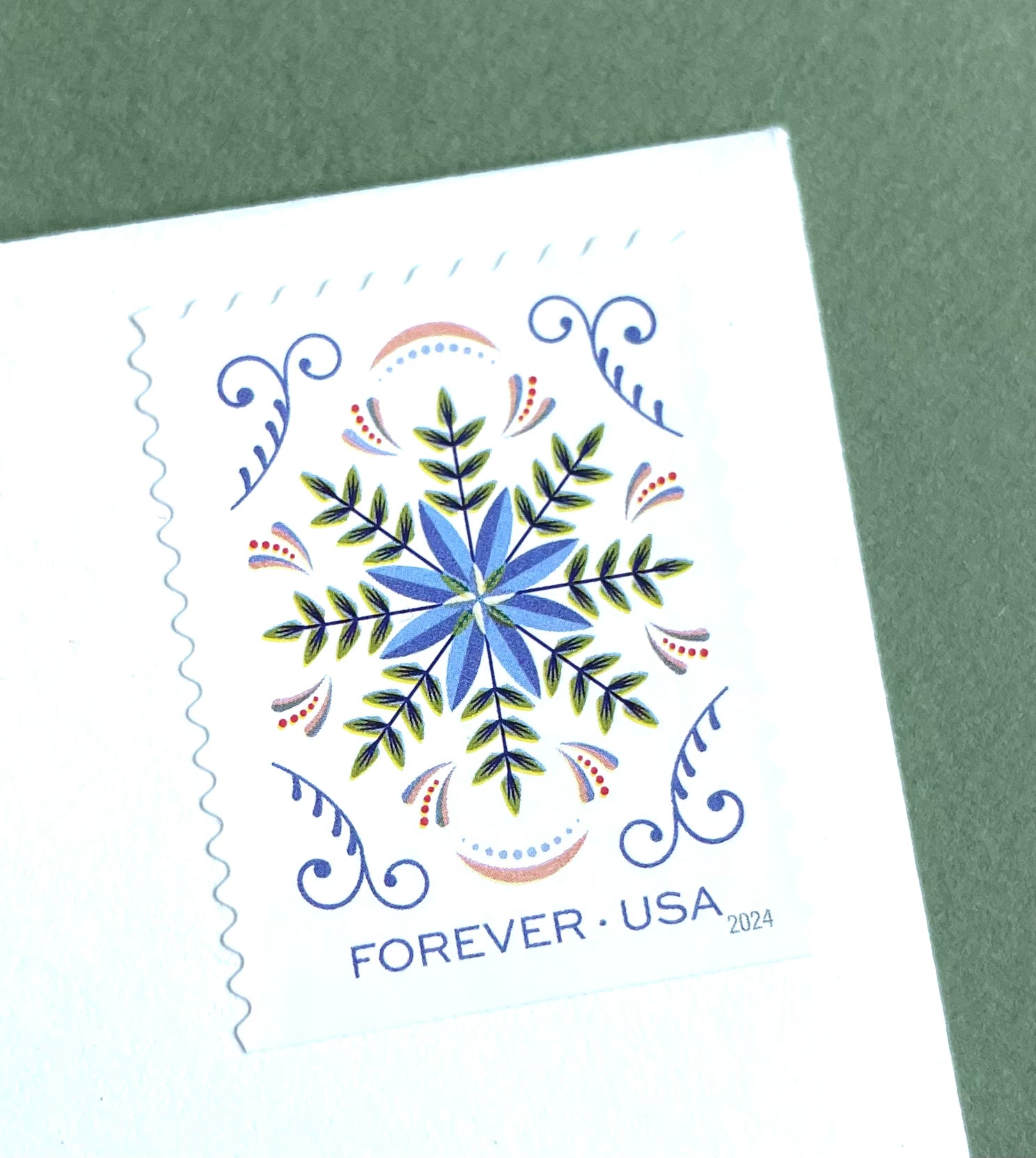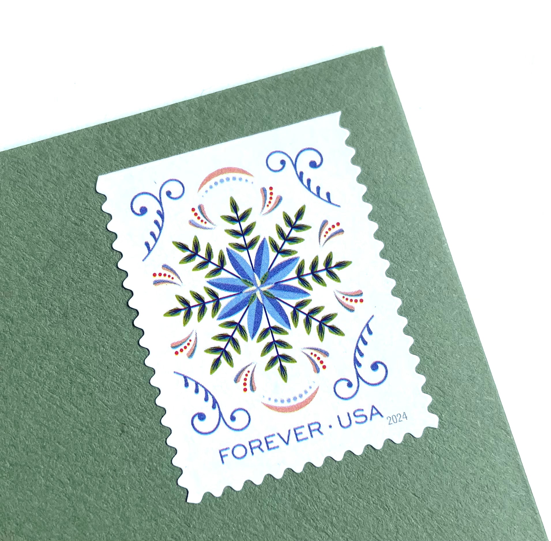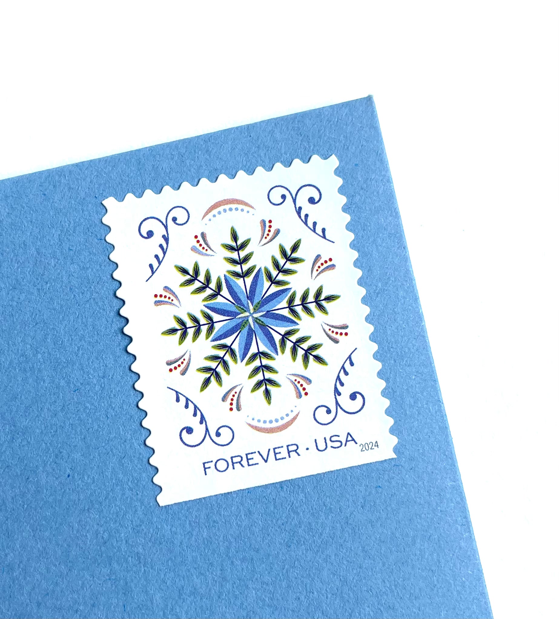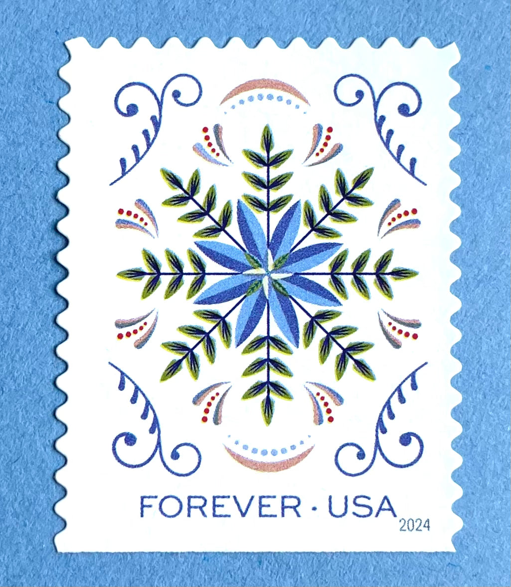 Includes a total of 10 (TEN) Blue Snowflake Floral Forever Stamps