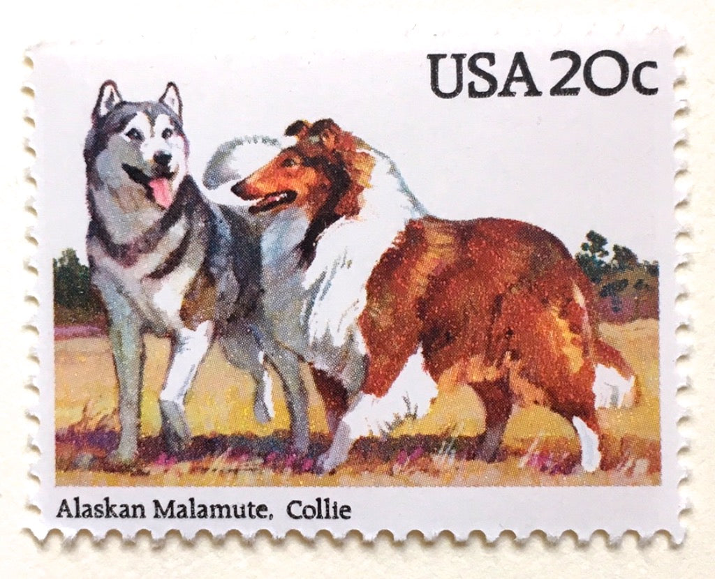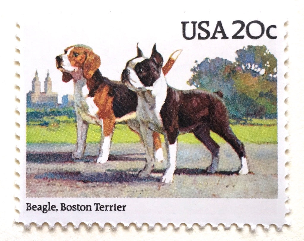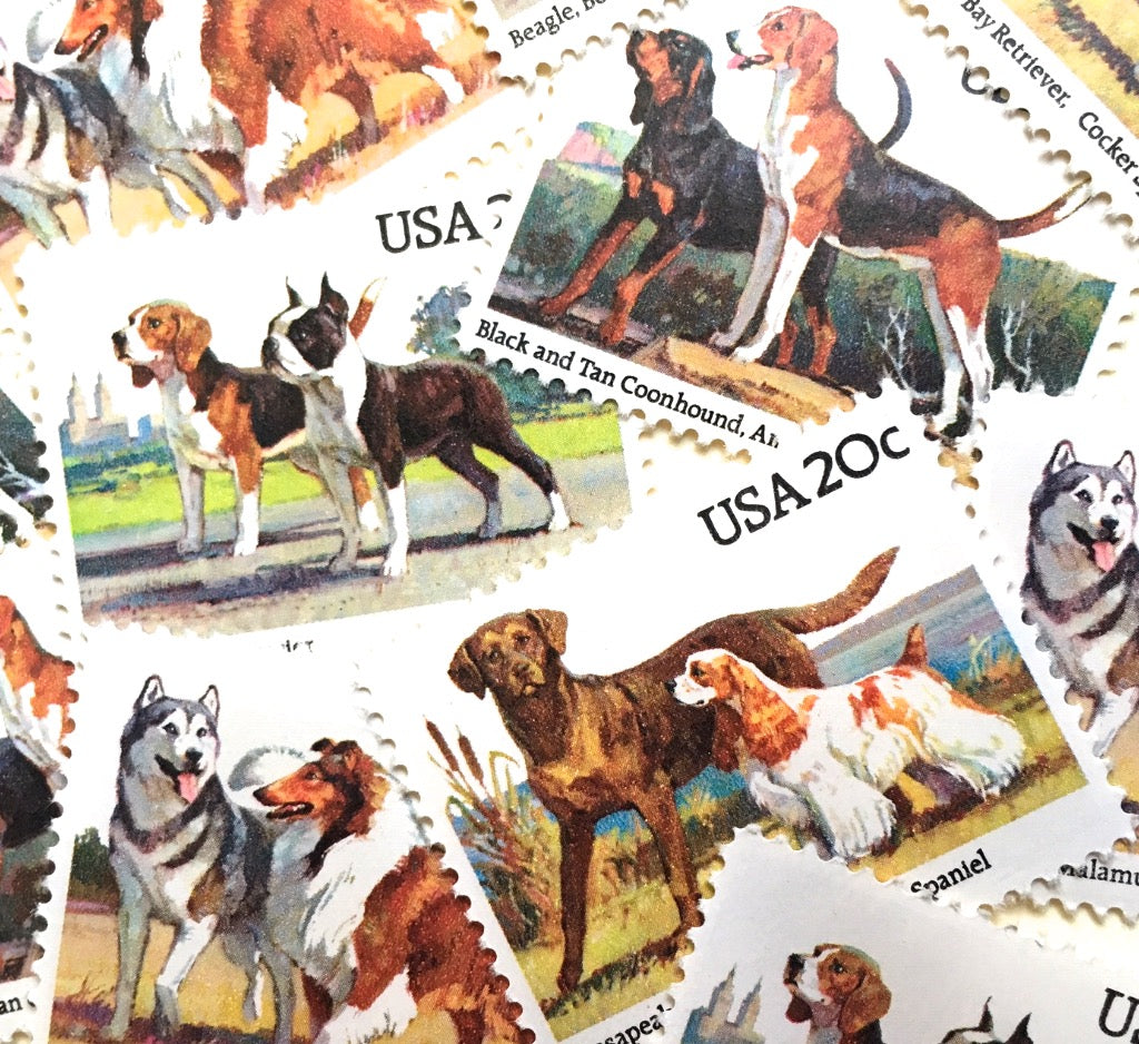 These vintage dog stamps are perfectly suitable for use as postage, as long as you use additional stamps to add up to the current postage rate. The breeds include: Boston Terrier, Beagle, Foxhound, Collie, Alaskan Malamute, Chesapeake Bay Retriever and Cocker Spaniel. These beautiful pet stamps will add an enchanting personalized touch to your greeting cards.