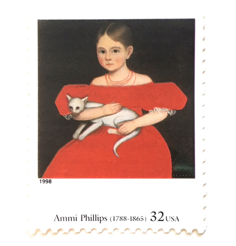 10 Girl in Red Dress with Cat Stamps // 1830s Painting by American Folk Artist Ammi Phillips // 32 Cent Folk Art Postage Stamps for Mailing