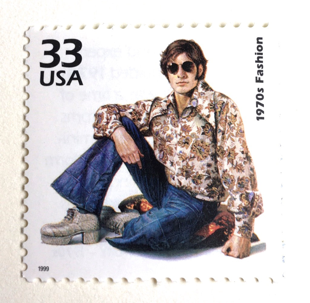 10 Hippie Postage Stamps Vintage 1970s Fashion Disco Peace Loving Postage Stamps for Mailing