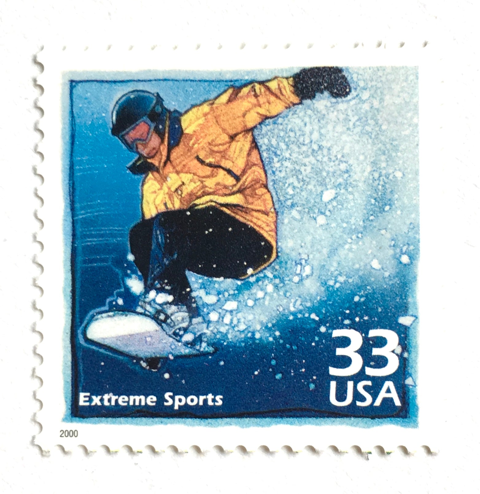 10 Snowboarding Stamps Vintage Unused Snowboarder Postage Stamps for Mailing