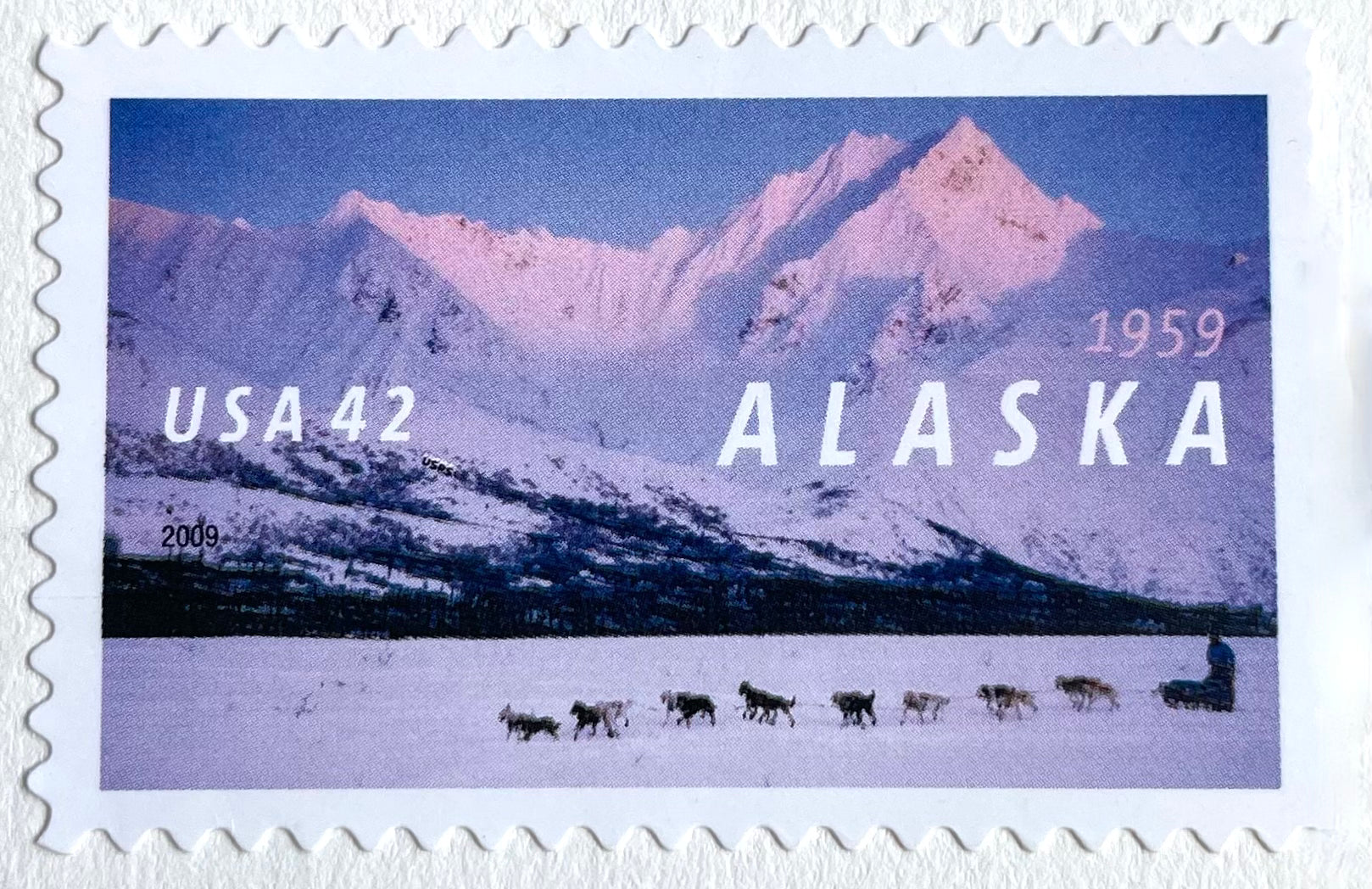 10 Alaska Mountain Stamps Unused Vintage Dog Sledding Postage for Mailing